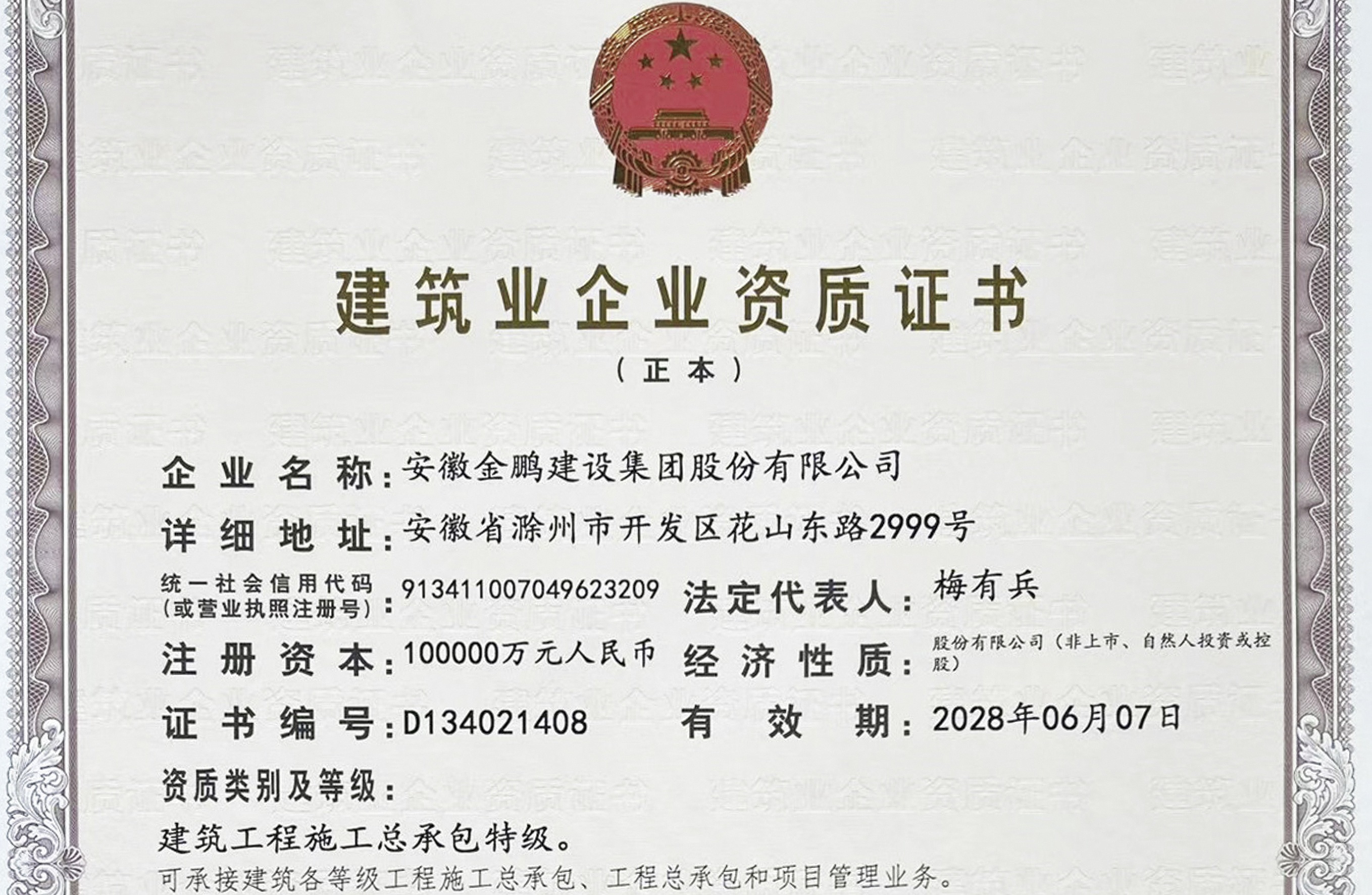 建筑工程施工總承包特級(jí)資質(zhì)