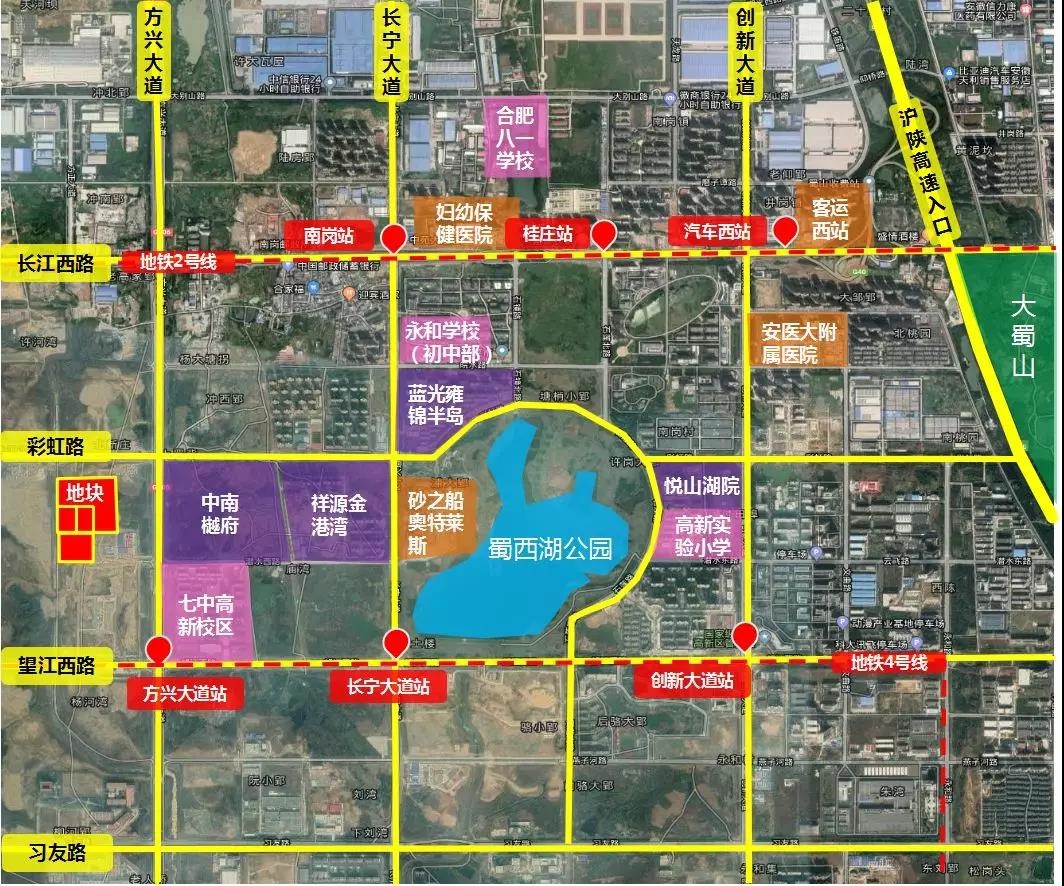 高新TG1號地塊資源得天獨厚,東臨蜀西湖公園、大蜀山森林公園,北臨彩虹路、東接城市主干道方興大道,地塊南北兩側為地鐵2號線和地鐵4號線,橫貫全城。