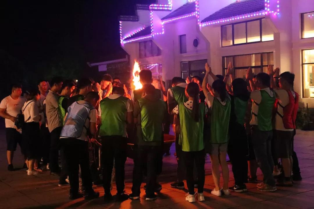 營銷管理中心周世龍總、王凱總,共同點(diǎn)燃團(tuán)隊(duì)希望之火,帶動(dòng)全員宣導(dǎo)金鵬的企業(yè)文化:百年金鵬、幸福金鵬,面對熊熊火焰,大家共同祈愿,愿金鵬事業(yè)紅紅火火!