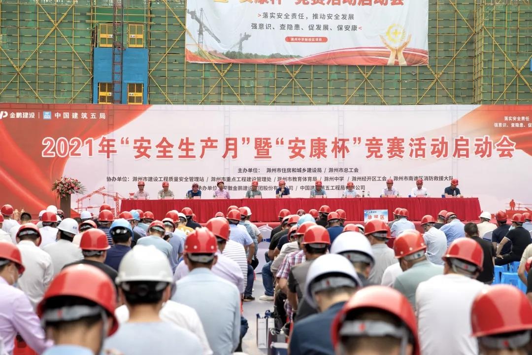 為深入貫徹落實(shí)習(xí)近平總書(shū)記關(guān)于安全生產(chǎn)重要論述,強(qiáng)化企業(yè)安全生產(chǎn)責(zé)任主體意識(shí),提升企業(yè)安全生產(chǎn)防控水平,打通事故應(yīng)急救援政企聯(lián)動(dòng)機(jī)制。6月9日下午,由滁州市住房和城鄉(xiāng)建設(shè)局、滁州市總工會(huì)主辦,安徽金鵬建設(shè)集團(tuán)股份有限公司、中國(guó)建筑第五工程局有限公司承辦的2021年“安全生產(chǎn)月”暨“安康杯”競(jìng)賽活動(dòng)啟動(dòng)會(huì)在滁州中學(xué)新校區(qū)項(xiàng)目主會(huì)現(xiàn)場(chǎng)舉行。