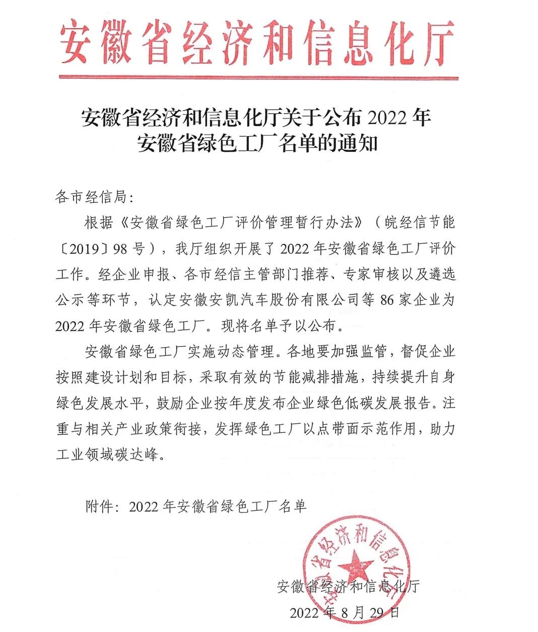 近日,安徽省經(jīng)濟(jì)和信息化廳公布了2022年省級(jí)綠色工廠名單,金鵬作為行業(yè)杰出代表被授予“綠色工廠”稱號(hào)。此次名單的公布,是為了貫徹落實(shí)《“十四五”工業(yè)綠色發(fā)展規(guī)劃》,旨在打造一批綠色產(chǎn)業(yè)先進(jìn)典型,發(fā)揮以點(diǎn)帶面的作用,引領(lǐng)產(chǎn)業(yè)綠色轉(zhuǎn)型升級(jí)。