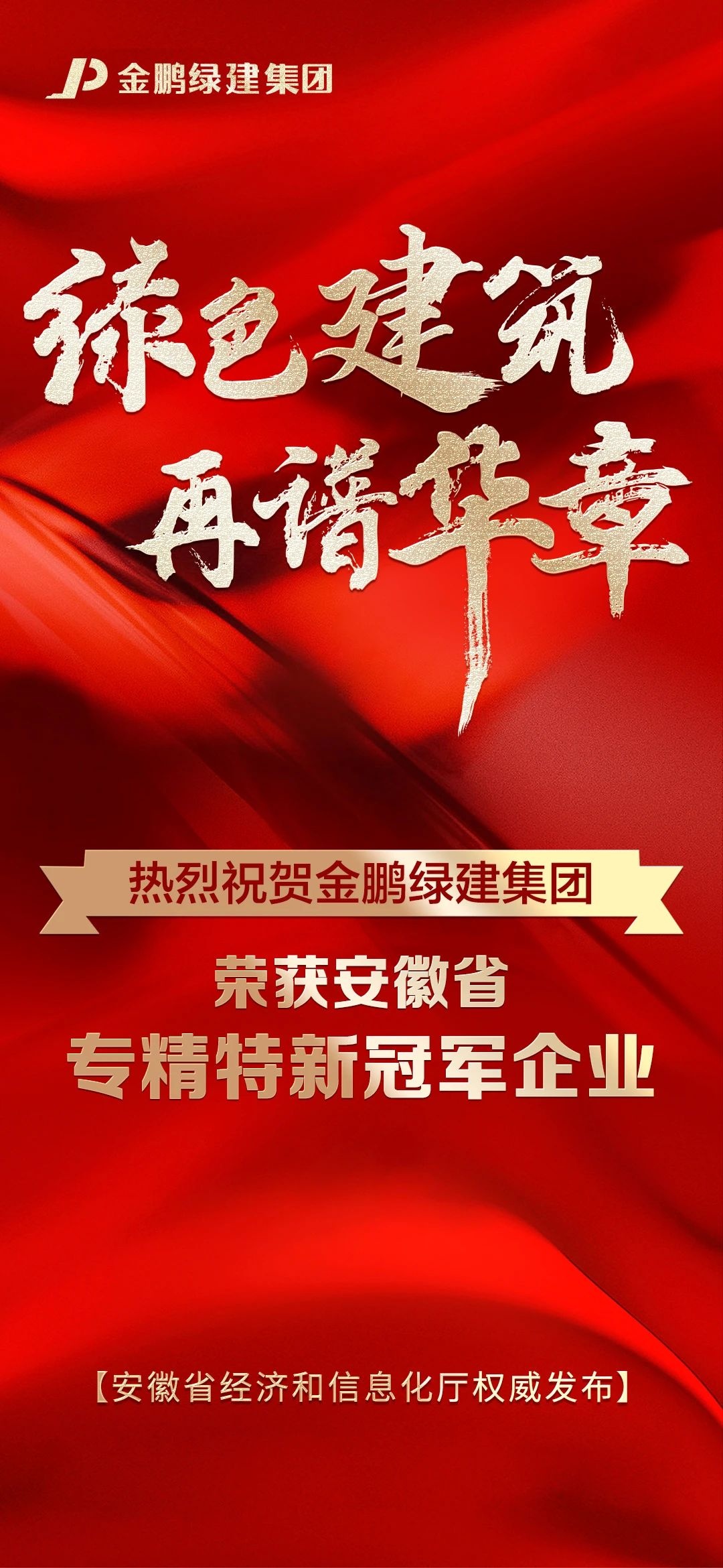 正是由于金鵬不斷聚焦在綠色建筑領(lǐng)域的技術(shù)創(chuàng)新,專(zhuān)注研發(fā)更高效節(jié)約的新型結(jié)構(gòu)體系,11月24日安徽省經(jīng)濟(jì)和信息化廳公示了2023年安徽省專(zhuān)精特新冠軍企業(yè)名單,金鵬綠建集團(tuán)榮獲“安徽省專(zhuān)精特新冠軍企業(yè)”稱(chēng)號(hào)。
