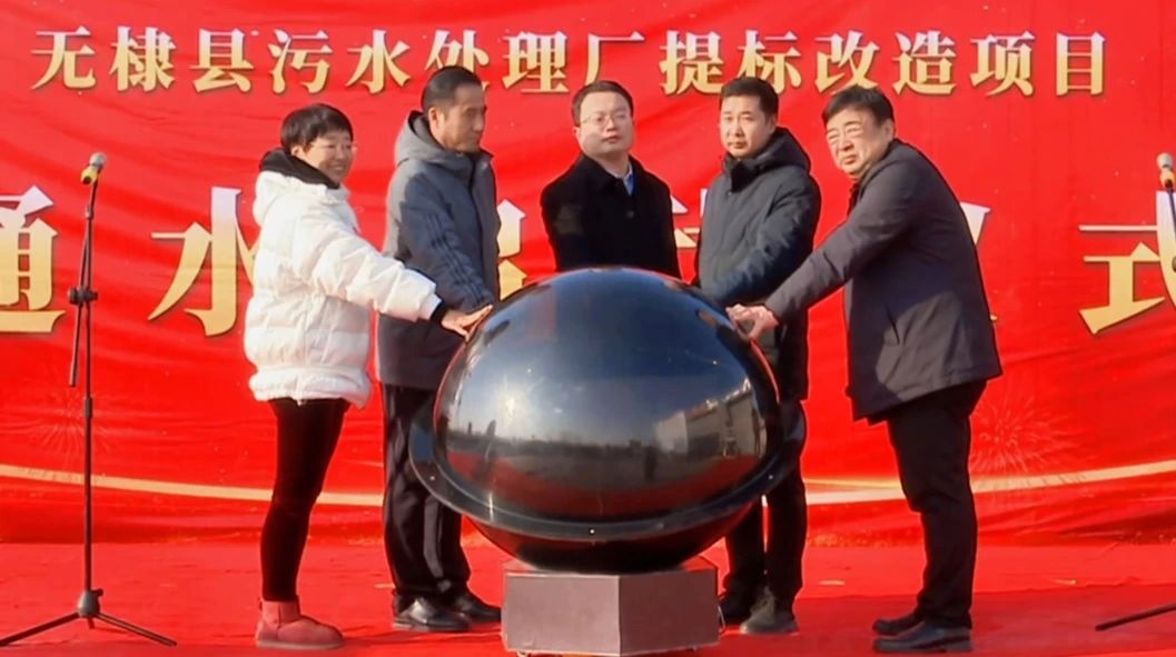 隨后,眾領(lǐng)導(dǎo)共同開(kāi)啟啟動(dòng)球,宣布無(wú)棣縣污水處理廠提標(biāo)改造項(xiàng)目正式通水試運(yùn)行。