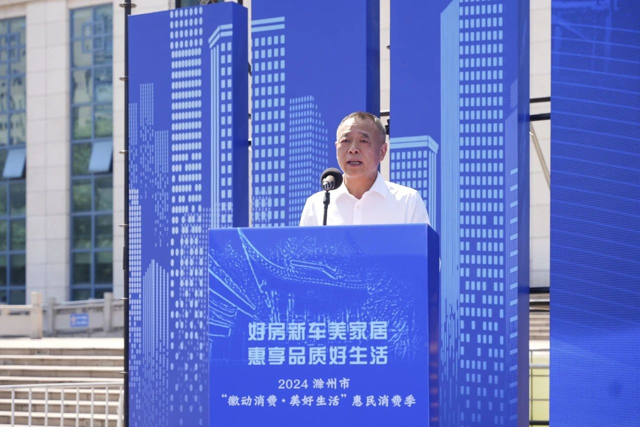 5月23日,以“好房新車美家居·惠民品質(zhì)好生活”為主題的2024滁州市“徽動消費·美好生活”惠民消費季展銷會在人民廣場盛大啟幕。中共滁州市委副書記、市長吳勁,滁州市人民政府副市長余成林、單培,副秘書長陳學(xué)武、范迪斌等領(lǐng)導(dǎo)以及市住建局、商務(wù)局、發(fā)展改革委等市直單位,市委宣傳部、滁州經(jīng)開區(qū)管委會、中新蘇滁高新區(qū)管委會,瑯琊區(qū)、南譙區(qū)相關(guān)單位,行業(yè)協(xié)會、市房地產(chǎn)企業(yè)及中介機構(gòu),汽車、家電、家居家裝企業(yè)代表,銀行業(yè)金融機構(gòu)代表參加活動。滁州市房地產(chǎn)行業(yè)協(xié)會會長、金鵬控股集團董事長孫元武參加活動并發(fā)言。