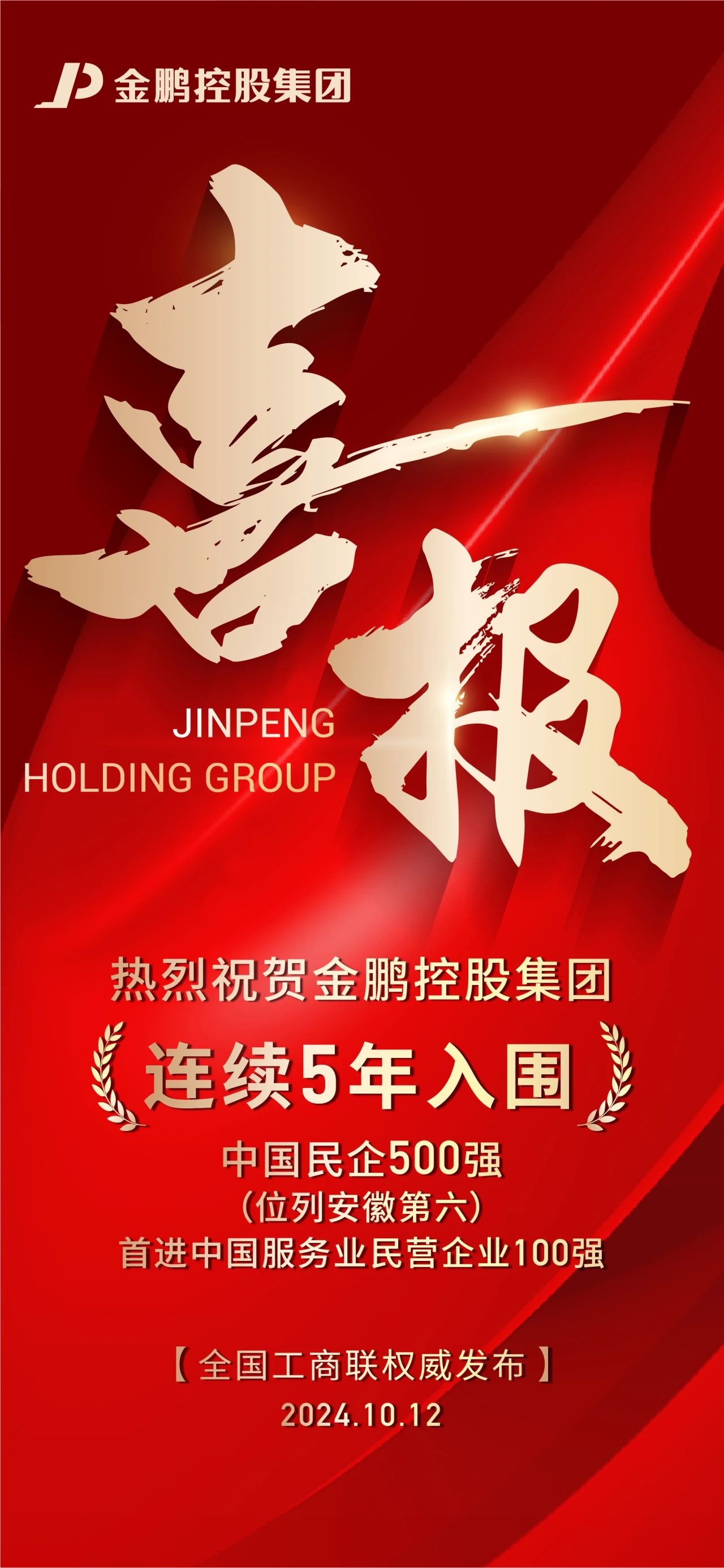 10月12日,由全國工商聯(lián)、甘肅省人民政府主辦,以“弘揚(yáng)改革精神、建設(shè)一流企業(yè)”為主題的2024中國民營企業(yè)500強(qiáng)發(fā)布會(huì)在蘭州市召開。2024中國民營企業(yè)500強(qiáng)榜單及有關(guān)報(bào)告同期發(fā)布。金鵬控股集團(tuán)持續(xù)穩(wěn)健發(fā)展,今年已是連續(xù)五年入選中國民企500強(qiáng)榜單,在安徽企業(yè)中排名第六,同時(shí),首進(jìn)中國服務(wù)業(yè)民營企業(yè)100強(qiáng),排名第88位。