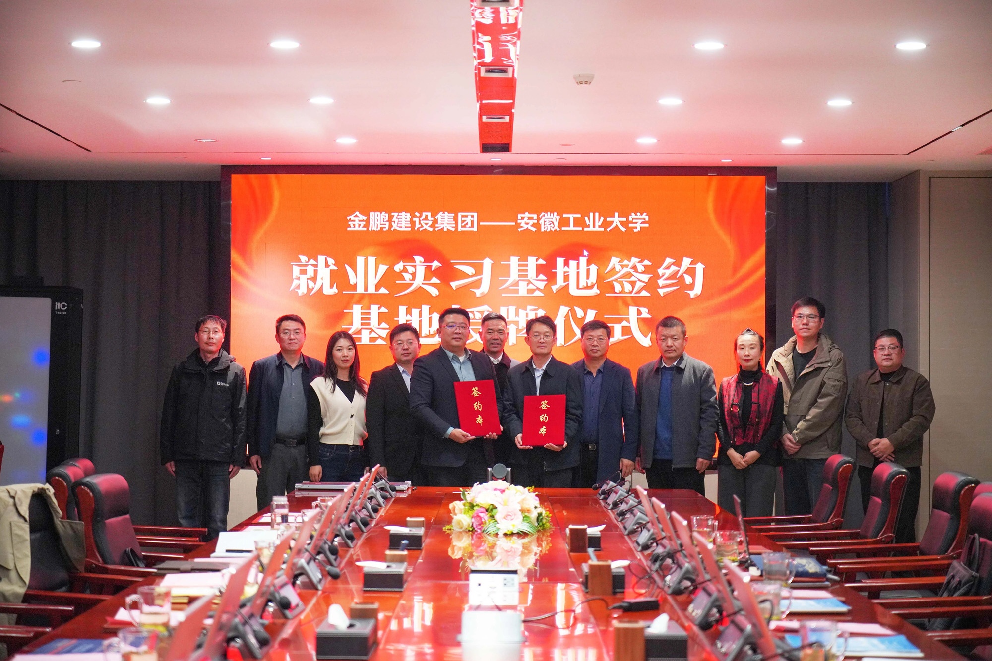 11月20日,金鵬建設(shè)集團(tuán)與安徽工業(yè)大學(xué)在金鵬總部大樓簽訂人才培養(yǎng)與就業(yè)基地建設(shè)合作協(xié)議。安徽工業(yè)大學(xué)黨委副書記王俊,建筑工程學(xué)院黨委書記張虎,黨委副書記、院長于峰,黨委副書記、紀(jì)委書記、副院長王穎之,土木系副主任姚曉光蒞臨金鵬,金鵬控股集團(tuán)副總裁陳禮兵,金鵬建設(shè)集團(tuán)總裁鄭冀東,產(chǎn)業(yè)研究院院長廖智強(qiáng)等高管熱情接待。